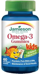 Les “ Omega - ” sont de très puissants acides gras, essentiels pour la croissance et au bon fonctionnement de tout l’organisme. Ils jouent un rôle majeur sur la santé, le développement du cerveau, des os, des muscles, des dents, des cheveux et des ongles. Bienfaits: Gummies d’oméga- 3. Procurent de l’AEP et de l’ADH Délicieux comprimés au goût d’orange, de citron et de fraise-banane 1 naturel.